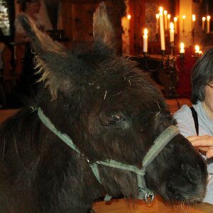 Esel und König unter unserem Viechzeug! Ein gar stämmiges Tier/ 10 Jahre alt/ gekauft bei einem Händler nahe dem heidnischen Böhmerland/solang er Futter kriegt ist er nur ein wenig störrisch/ aber wenn nicht... Zu seinen Lieblingsspeisen zählt der Latz und das Ordentliche Register/ also gebt tunlichst acht auf Eure Habseligketen!